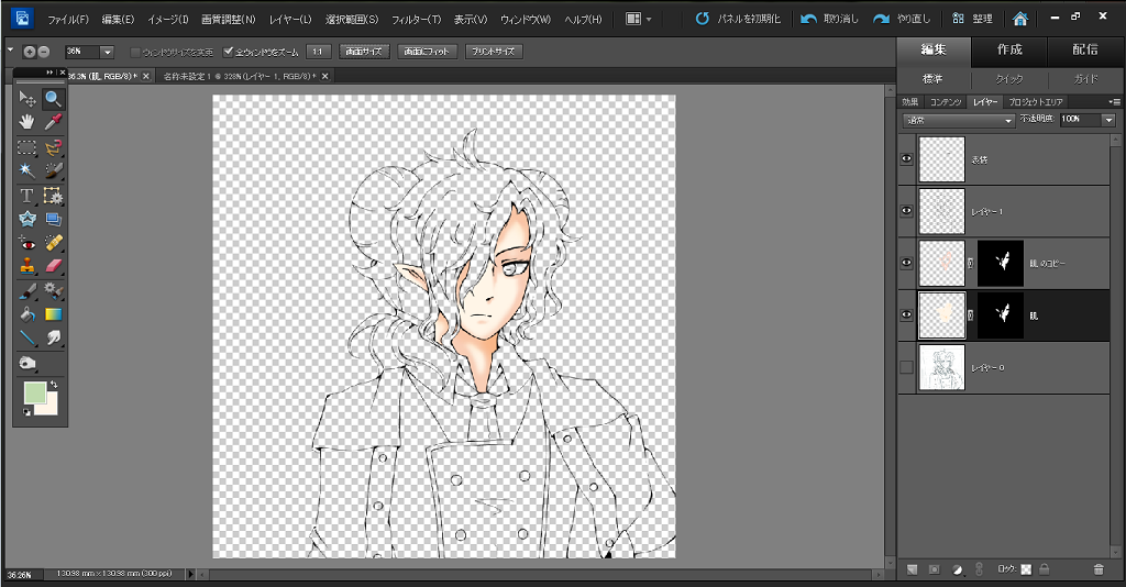使用ソフトはPhotoshop 10 elementsだけ。SAI欲しいな。