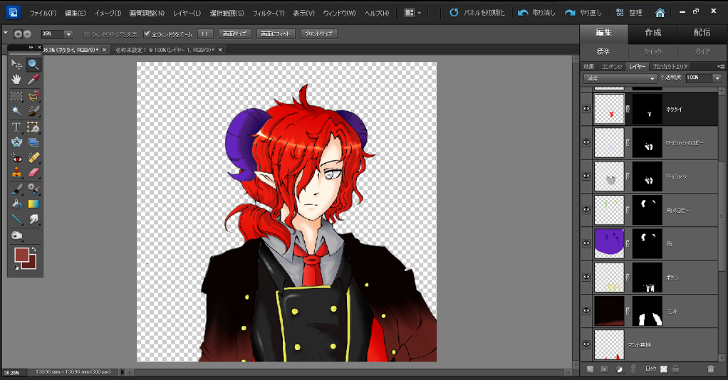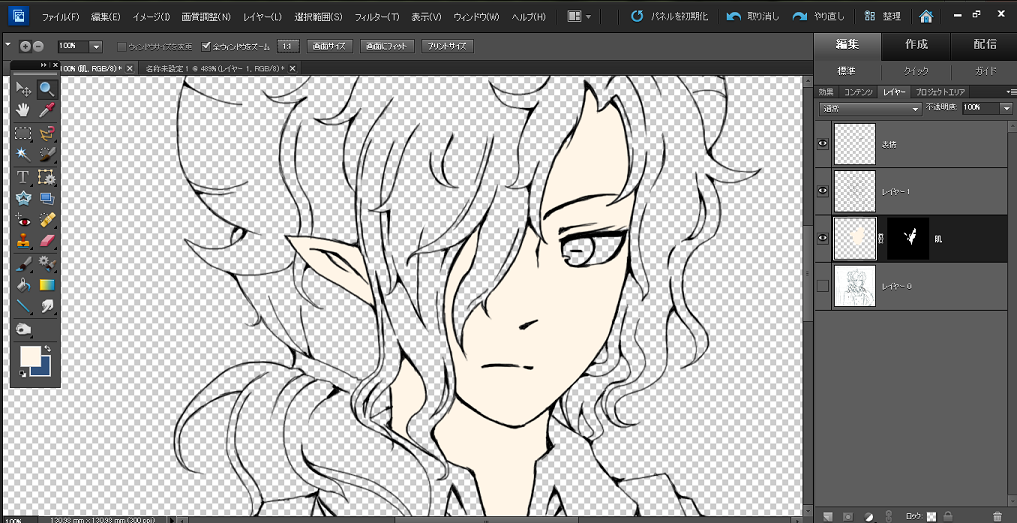 今回はアイコンにする予定だったので表情(顔のパーツ)だけレイヤを変えています。