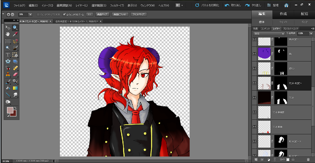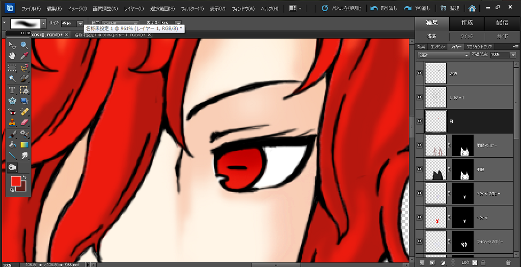 なおこの時マントに影を忘れてるんですが(横を見るとマントのレイヤが一つ)、それはあとで直してます。さて、最後の仕上げは目ですね。